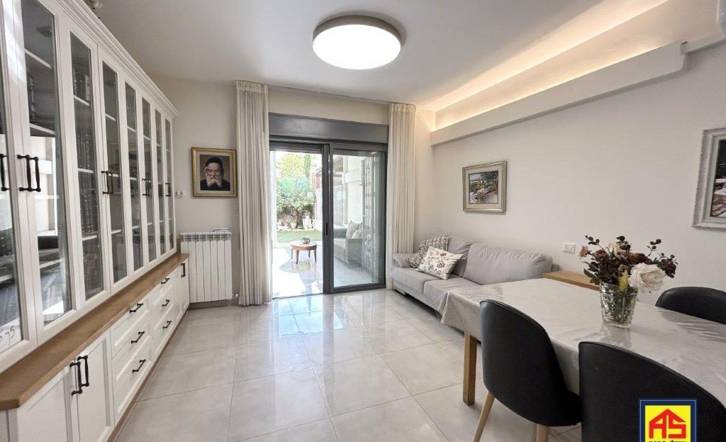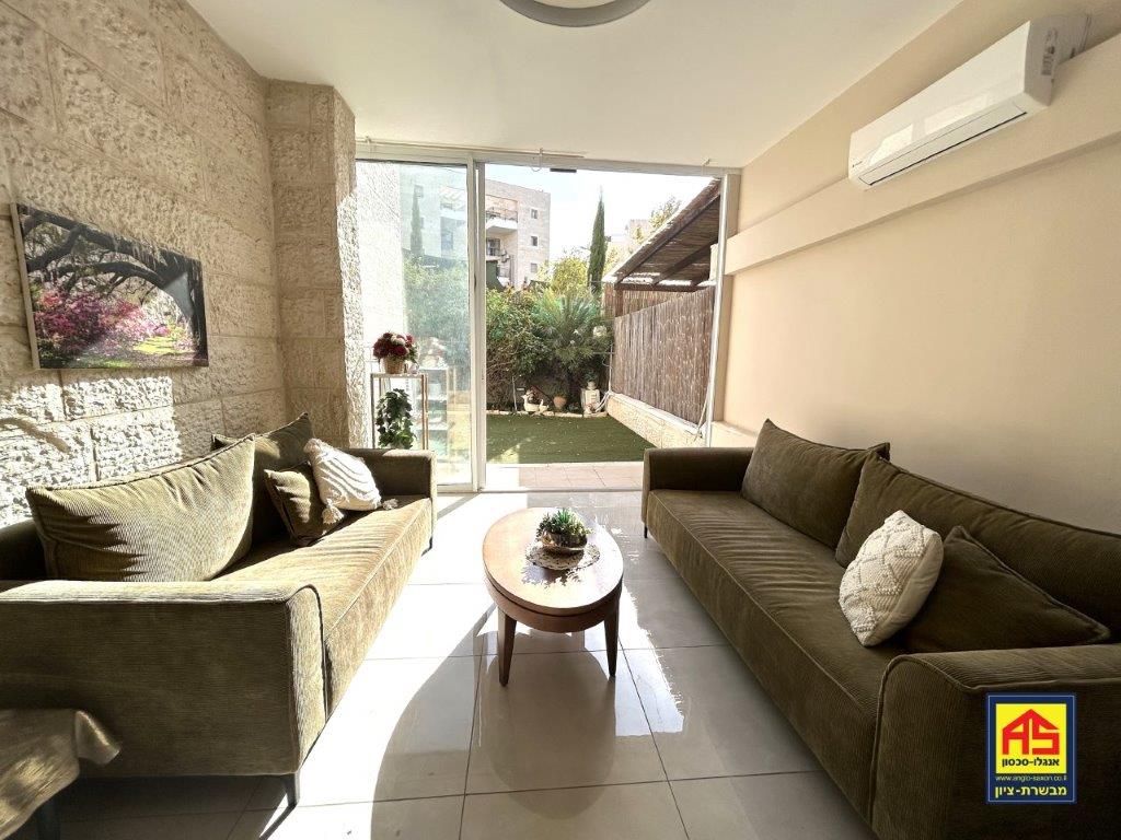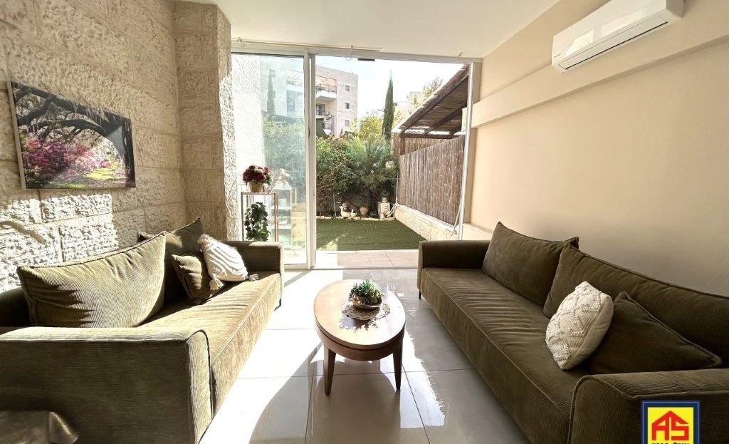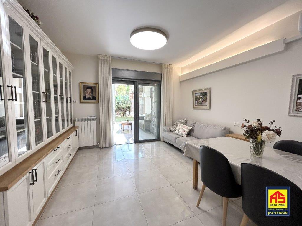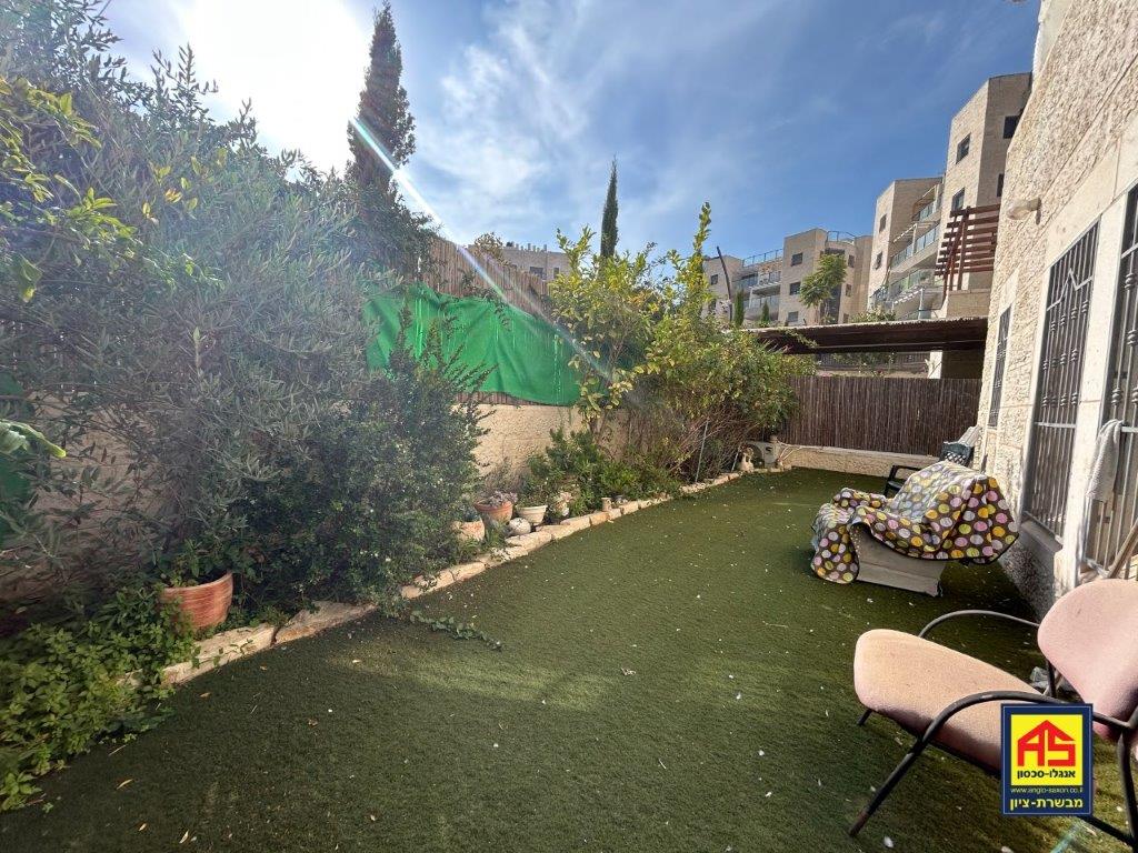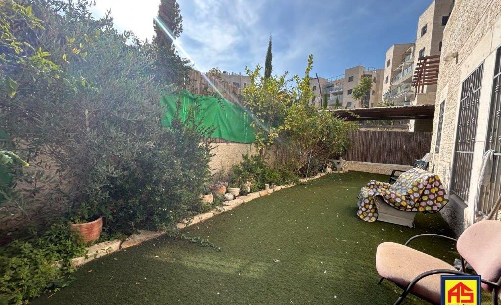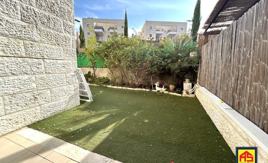 In Telz Stone, a beautiful & spacious 5-room garden apt. (142 sqm), like new! High ceilings, Large 110 sqm garden, A/C, 2 storage rooms , Ideal for families, near playgrounds, easy access to JLM-TLV highway. Exclusive!