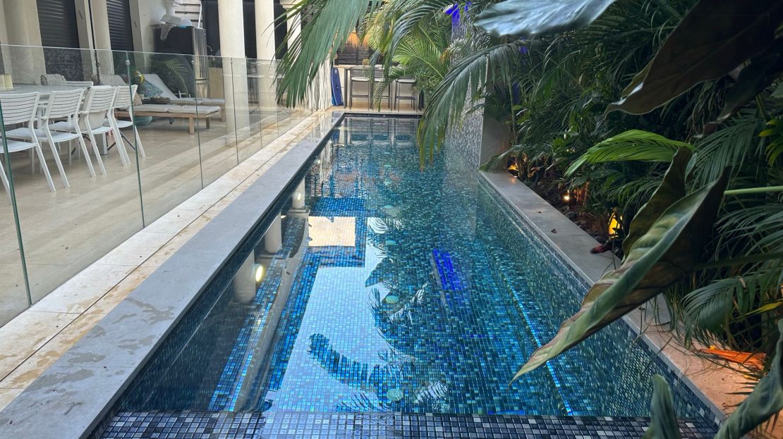 The home offers a heated pool and Jacuzzi, luxury designer furniture, chef’s kitchen + full outdoor kitchen, separate unit at the villa’s entrance, landscaped garden with mature fruit trees, double garage, prime location in a central but very quiet neighborhood, next to Kfar Shmaryahu and Arsuf.